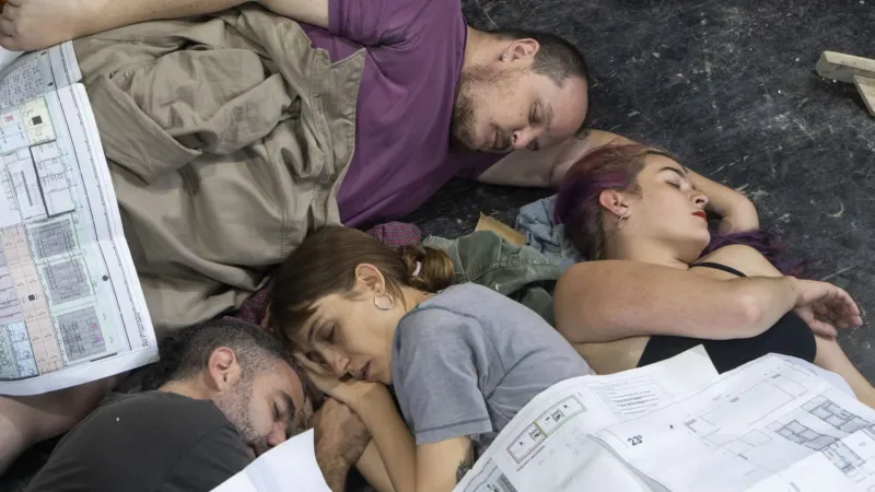 Las muy buenas actuaciones de Sayi Andrada Gutiérrez (La Giorgi, arquitecta uruguaya), Fabricio Bozza (Líder, maestro mayor de obra venezolano), Verónica Donadío (Muma, la albañil inglesa), Federico Foscaldi ( Chamu, albañil paraguayo) hacen que la obra fluya y transmita estas realidades.